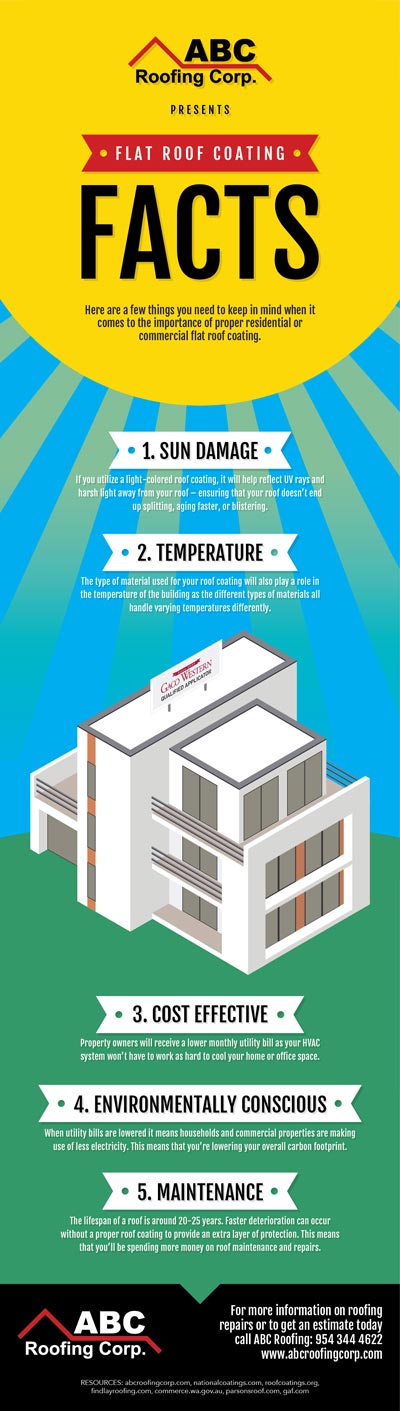 The benefits of flat roof coating are limitless, and it would be extremely beneficial to any residential or commercial property owner. Don’t hesitate to have your commercial or residential roof coated today! The friendly and reliable team at ABC Roofing Corp have got your back. If you have any questions, contact us at (954) 344-4622.